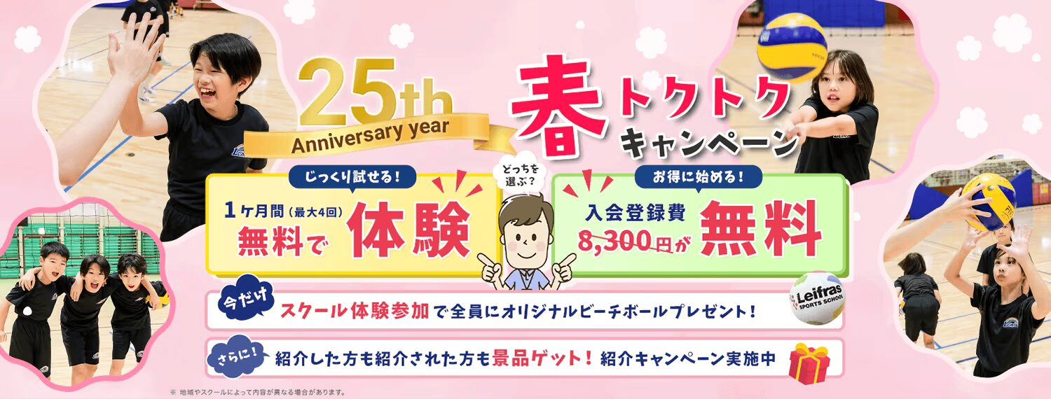 バレーボールスクールルミゼでは、現在、実施中の「どっちを選ぶ?春トクキャンペーン」がパワーアップして3月1日(日)より「春トクトクキャンペーン」がスタートします!